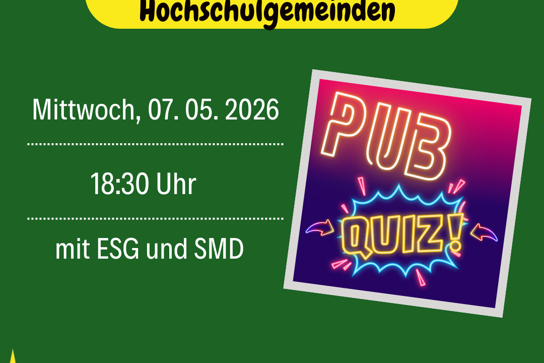 Bundesweites Pubquiz der Hochschulgemeinden gemeinsam mit ESG und SMD 7. Mai um 18:30 Uhr St. Joseph Bahnhofstr. 11-13, 17489 Greifswald