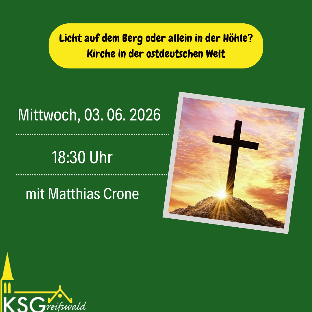 Licht auf dem Berg oder allein in der Höhle? Über die Kirche in der ostdeutschen Welt mit Matthias Crone 3. Juni um 18:30 Uhr St. Joseph Bahnhofstr. 11-13, 17489 Greifswald