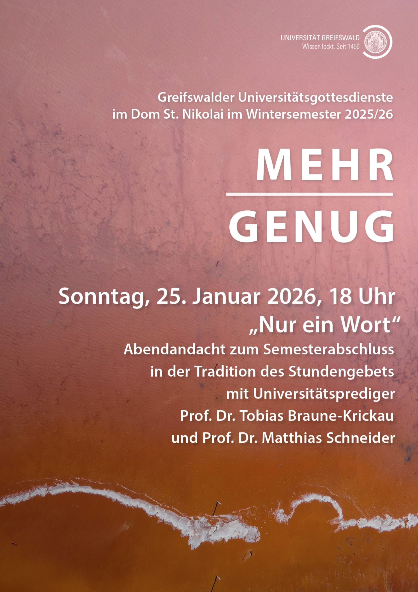 Abendandacht zum Semesterabschluss in der Tradition des Stundengebets mit Universitätsprediger Prof. Dr. Tobias Braune-Krickau und Prof. Dr. Matthias Schneider.